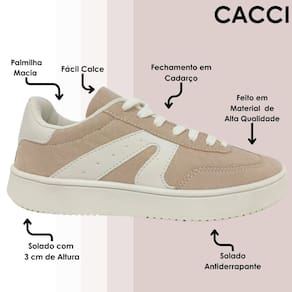 Seja para o dia a dia ou para ocasiões casuais, o Tênis Casual Feminino da Cacci é a combinação perfeita de conforto, estilo e qualidade. Garanta o seu e sinta a diferença no conforto e elegância em cada passo!