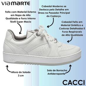Esse modelo Via Marte foi desenvolvido para mulheres que buscam unir estilo moderno e conforto no dia a dia. Seu cabedal é confeccionado em material de alta qualidade, com costuras bem definidas e pequenos furos estrategicamente posicionados que proporcionam melhor respirabilidade para os pés. O detalhe em strass no passador principal do cadarço traz um toque delicado e sofisticado, garantindo um charme especial ao visual sem perder a versatilidade.