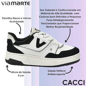 Esse tênis Via Marte foi pensado para mulheres que desejam unir estilo moderno, conforto e praticidade em um único modelo. Confeccionado em material de alta qualidade, ele traz costuras bem definidas e pequenos furos estrategicamente posicionados que garantem melhor respirabilidade, mantendo os pés sempre mais frescos. Seu design atual é versátil, perfeito para compor looks casuais e urbanos, acompanhando o ritmo do dia a dia sem abrir mão da sofisticação.