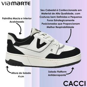 Esse tênis Via Marte foi pensado para mulheres que desejam unir estilo moderno, conforto e praticidade em um único modelo. Confeccionado em material de alta qualidade, ele traz costuras bem definidas e pequenos furos estrategicamente posicionados que garantem melhor respirabilidade, mantendo os pés sempre mais frescos. Seu design atual é versátil, perfeito para compor looks casuais e urbanos, acompanhando o ritmo do dia a dia sem abrir mão da sofisticação.