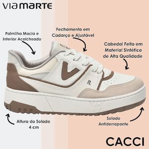 O tênis Via Marte foi desenvolvido para quem valoriza conforto, qualidade e um visual moderno que combina com diferentes ocasiões. Seu cabedal confeccionado em material sintético de alta qualidade garante resistência e acabamento impecável, enquanto o interior acolchoado e a palmilha macia proporcionam conforto prolongado mesmo após horas de uso. O fechamento em cadarço ajustável permite um encaixe perfeito à parte interna dos pés, oferecendo firmeza e segurança ao caminhar. Com altura de solado de 4 cm, ele acrescenta um toque de estilo e elevação sem abrir mão da estabilidade. O solado antiderrapante assegura ótima aderência em diversos tipos de superfícies, tornando este modelo ideal para acompanhar a rotina, seja em passeios, compromissos casuais ou no ambiente de trabalho. Versátil e fácil de combinar, é a escolha certa para quem busca unir moda e praticidade em um único calçado.