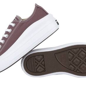 O icônico Chuck Taylor All Star Move com seu solado plataforma ultra-leve, chega em sua versão com composição de cores sazonais. É confeccionado em algodão tipo lona , possui costuras duplas no cabedal para maior resistência e forro interno acolchoado para maior conforto. O logo Converse All Star é aplicado na tag na língua e na traseira da entressola. Para complementar o conforto, o calçado possui palmilhas em PU feitas com Die-Cut, unidas ao solado plataforma com aproximadamente 4 cm de altura (podendo variar conforme o tamanho do tênis) tipo cupsole feito em EVA que garante um conforto levíssimo. O solado vulcanizado garante a aderência adequada ao caminhar.