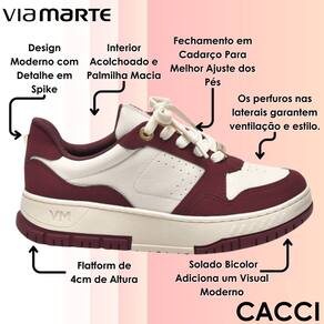 O Tênis Via Marte com designer moderno foi pensado para quem busca estilo e conforto no dia a dia seu visual marcante conta com detalhe em aplique de acabamento que eleva o charme da peça o interior é revestido com material macio que proporciona sensação agradável durante todo o uso e sua palmilha de toque suave oferece mais bem-estar a cada passo o fechamento em cadarço permite ajuste prático e seguro adaptando-se perfeitamente à parte interna dos pés os microfuros localizados nas laterais foram estrategicamente pensados para favorecer a ventilação garantindo frescor mesmo após longos períodos de uso além disso o solado com duas tonalidades acrescenta um toque contemporâneo ao modelo tornando-o ideal para compor produções estilosas tanto para passeios quanto para ambientes urbanos eventos informais ou mesmo para o cotidiano o tênis é uma escolha versátil que une design atualizado com funcionalidade oferecendo conforto e elegância para diversas ocasiões