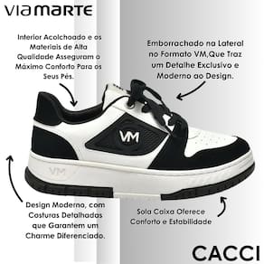 O tênis casual Via Marte combina estilo e conforto para acompanhar sua rotina com versatilidade. Seu interior acolchoado e materiais de alta qualidade proporcionam sensação macia e agradável, cuidando dos pés ao longo do dia. O fechamento em cadarço garante ajuste firme, enquanto o detalhe emborrachado lateral com as iniciais da marca adiciona um toque exclusivo e moderno ao design. As costuras bem trabalhadas reforçam a durabilidade e valorizam o visual, transmitindo sofisticação em cada detalhe. O solado caixa oferece estabilidade e conforto, tornando o caminhar mais seguro e suave. Ideal para compor looks casuais e urbanos, combina perfeitamente com calças, saias ou vestidos, garantindo praticidade e estilo em qualquer ocasião.