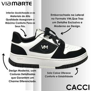 O tênis casual Via Marte combina estilo e conforto para acompanhar sua rotina com versatilidade. Seu interior acolchoado e materiais de alta qualidade proporcionam sensação macia e agradável, cuidando dos pés ao longo do dia. O fechamento em cadarço garante ajuste firme, enquanto o detalhe emborrachado lateral com as iniciais da marca adiciona um toque exclusivo e moderno ao design. As costuras bem trabalhadas reforçam a durabilidade e valorizam o visual, transmitindo sofisticação em cada detalhe. O solado caixa oferece estabilidade e conforto, tornando o caminhar mais seguro e suave. Ideal para compor looks casuais e urbanos, combina perfeitamente com calças, saias ou vestidos, garantindo praticidade e estilo em qualquer ocasião.