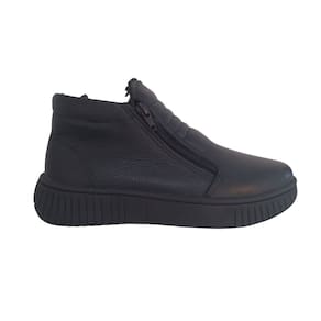 O modelo de Bota Casual Feminina Com Pelo Couro na cor preta, conta com forração interna em lã sintética em TODA FORRADA (PELO/LÃ) e fechamento por zíper. Seu solado é produzido em borracha antiderrapante para garantir maior segurança e conforto ao caminhar. Material: couro; Altura da sola: de 3,5cm aproximadamente. Fechamento: zíper. Marca: QR Shoes