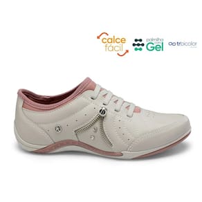 O tênis para ser seu aliado em qualquer desafio do cotidiano: de calce fácil, graças ao zíper estrategicamente colocado na lateral do peito do pé, entrega ainda um design incrível, os cadarços recebem elástico para ajustar ainda mais o calçado ao pé, enquanto o cabedal clean recebe a aplicação de cravos e micro furos em locais estratégicos do pé, para melhor transpiração. E a palmilha recebe cunho em gel, oferecendo ainda mais absorção de impacto na caminhada.