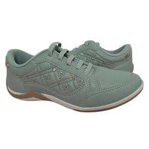 -Costuras diferenciadas e aplicações em cravos metalizados na lateral dando aquele glow -Cor verde musgo -Com pedrinha de strass brilhante -Material sintetico -Palmilha gel -Microfuros estrategicamente na região frontal, responsáveis por auxiliar na respirabilidade do pé ao longo do dia. - Sola em Trbicolor antiderrapante ***FORMA E CORRETA *** 34-23.5 CM 35-24 CM 36-24.5 CM 37-25 CM 38-25.5 CM 39-26 CM 40-26.5 CM