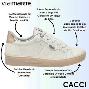 O acabamento valorizado por detalhes bem posicionados traz personalidade ao modelo sem exageros. O solado flatform garante uma leve elevação, promovendo conforto e firmeza a cada passo, além de proporcionar uma pisada mais segura. A parte interna oferece maciez, contribuindo para uma experiência de uso agradável ao longo de todo o dia.