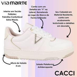 Com um design elegante e repleto de detalhes que fazem toda a diferença, o Tênis Via Marte é ideal para quem busca um calçado que une sofisticação e conforto. O cabedal é feito com material resistente, garantindo durabilidade e acabamento impecável, com texturização que adiciona um toque único ao modelo. O detalhe em “V” estilizado, localizado na lateral, remete ao logo da marca, conferindo um charme extra e evidenciando o estilo contemporâneo do produto. O interior do tênis é acolchoado, com um tecido poliéster que proporciona sensação de maciez ao toque e a palmilha confortável garante conforto durante o uso prolongado. Seu solado plataforma de 4 cm oferece uma leve elevação, sem comprometer a estabilidade, enquanto a base antiderrapante assegura segurança ao caminhar em diferentes superfícies.