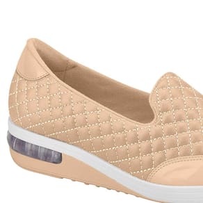 Tênis Casual Modare , feito em material sintético. Cabedal com efeito matelassê. Recorte no bico envernizado. Forro têxtil. O diferencial fica por conta do solado com implementação do gel anti-impacto. Aliviando possíveis dores ao caminhar.ótimo para pessoas com esporão de calcaneo.