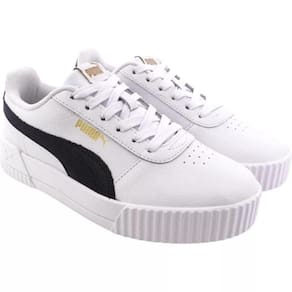 Para mulheres que buscam estilo e versatilidade, aposte no Tênis Puma Carina Lux Bdp. É confeccionado com material durável de fácil limpeza, com perfuros para respirabilidade, solado maior que habitual e design clássico que combina desde o jeans até saias e vestidos. Conte com a Puma para vestir o seu urbanwear em grande estilo!