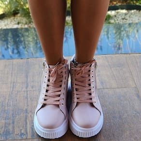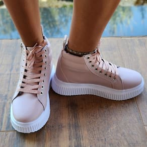 Tenis Feminino Rosa com Solado tratorado Plataforma. Botinha Feminina Sola Alta. - 38 - Rosa