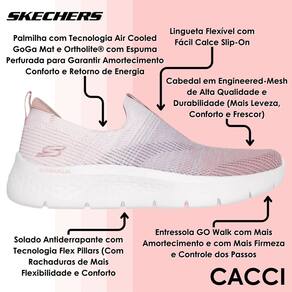 O cabedal respirável com estrutura ajustável envolve os pés com suavidade, proporcionando ventilação e conforto térmico durante todo o uso. O calce fácil tipo slip-on facilita o dia a dia, permitindo vestir o tênis com rapidez e sem esforço. A combinação de materiais tecnológicos garante durabilidade, leveza e um encaixe natural, tornando o Skechers Go Walk Flex uma excelente escolha para quem valoriza praticidade e bem-estar sem abrir mão de estilo e qualidade.