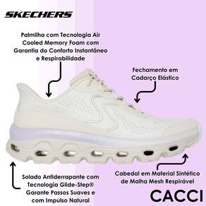 O cabedal em material sintético de malha mesh respirável garante ajuste confortável e ventilação contínua, permitindo que os pés se mantenham secos e arejados. O fechamento em cadarço elástico facilita o calce, oferecendo praticidade e encaixe seguro. O solado antiderrapante com tecnologia Glide-Step® completa o conjunto, promovendo passos suaves e impulso natural, com tração eficaz em diferentes superfícies. Um modelo que combina tecnologia, leveza e design para acompanhar você com elegância e segurança em todos os momentos.