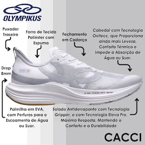 -OXITEC: Tecnologia localizada no cabedal, com uma nova composição de fios, integrando monofilamento, poliéster e elastano. Proporciona ainda mais leveza, conforto térmico e impede a absorção de água ou suor.