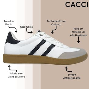 Adicione um toque de elegância ao seu guarda-roupa com o Tênis Cacci! Confortável, segura e cheia de estilo, ela é a escolha perfeita para quem quer se destacar. Garanta a sua agora e sinta-se confiante a cada passo!