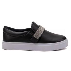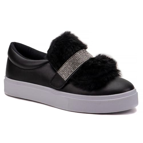Tênis Feminino Slip On 3 em 1 Casual Strass E Pelúcia - 37 - Preto