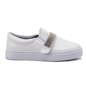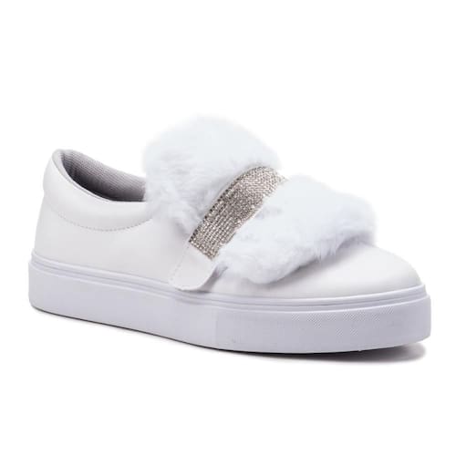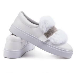 Tênis Feminino Slip On 3 em 1 Casual Strass E Pelúcia - 36 - Branco