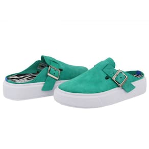 CARACTERÍSTICAS DO PRODUTO Material: Camurça Fechamento: Sem Fecho Material Interno: Têxtil Palmilha: Gel Estilo da Peça: Lisa Altura do Solado em Cm: 4 cm Solado: Borracha Detalhe: Fivela Lateral Ajustável