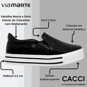 O Tênis Slip On Via Marte Feminino 2210209 é um modelinho cheio de estilo, conforto e casualidade. É uma ótima opção para se usar tanto no dia a dia quanto em passeios aos finais de semana. Seu design apresenta ajuste elástico nas laterais, palmilha removível em espuma e solado plataforma em PVC medindo 3,5 cm. Viva o estilo com Via marte!