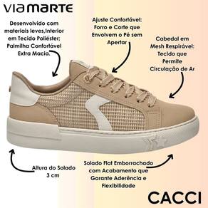Esse modelo Via Marte foi desenvolvido para mulheres que buscam um calçado moderno, confortável e cheio de estilo para acompanhar a rotina. Seu cabedal em tecido mesh respirável garante ventilação constante, mantendo os pés frescos durante todo o uso, enquanto o forro interno acolchoado proporciona um encaixe suave e agradável. A palmilha anatômica com espuma macia reforça a sensação de conforto, tornando cada passo mais leve e relaxante mesmo em longos períodos de caminhada. O solado emborrachado com três centímetros de altura entrega flexibilidade, ótima aderência e estabilidade, ideal para diferentes tipos de solo, oferecendo segurança e liberdade de movimento em qualquer ocasião. Seu design versátil e contemporâneo permite combinações práticas, desde looks casuais até produções mais sofisticadas, valorizando tanto momentos descontraídos quanto situações que pedem um toque extra de estilo. A construção leve e resistente faz com que o modelo seja um aliado perfeito para o dia a dia, equilibrando conforto, durabilidade e elegância em um único calçado. Esse Via Marte é a escolha certa para quem deseja unir funcionalidade e moda em uma peça que se adapta facilmente a diferentes estilos e momentos.