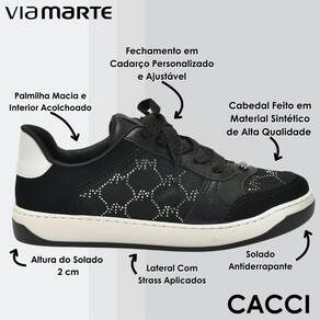 Tênis Feminino Strass Moderno Casual Conforto Via Marte - 38 - Preto