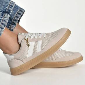 Seu design é moderno e versátil, com listras laterais que remetem à tendência esportiva e detalhe metálico em formato de raio com o logo da marca, trazendo autenticidade e um toque fashion. O solado emborrachado de dois centímetros de altura tem acabamento translúcido que garante excelente aderência e flexibilidade, oferecendo mais segurança em cada passo. Esse tênis é ideal para combinar com diferentes produções, desde looks casuais até composições mais estilosas, proporcionando praticidade e bem-estar em todas as ocasiões. Uma escolha certeira para quem gosta de unir moda e funcionalidade em um único calçado.