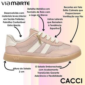 Esse modelo da Via Marte é perfeito para quem busca estilo e conforto no dia a dia. Ele foi desenvolvido com materiais leves e conta com interior em tecido poliéster e palmilha macia que proporciona sensação agradável durante o uso. Possui recortes em tela estilo colmeia que favorecem a ventilação dos pés, mantendo a respirabilidade mesmo em longos períodos.