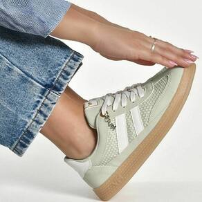 Seu design é moderno e versátil, com listras laterais que remetem à tendência esportiva e detalhe metálico em formato de raio com o logo da marca, trazendo autenticidade e um toque fashion. O solado emborrachado de dois centímetros de altura tem acabamento translúcido que garante excelente aderência e flexibilidade, oferecendo mais segurança em cada passo. Esse tênis é ideal para combinar com diferentes produções, desde looks casuais até composições mais estilosas, proporcionando praticidade e bem-estar em todas as ocasiões. Uma escolha certeira para quem gosta de unir moda e funcionalidade em um único calçado.