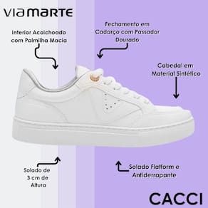 Este Tênis Via Marte Casual apresenta cabedal em material sintético, oferecendo durabilidade e fácil limpeza. Seu bico é arredondado, proporcionando conforto aos dedos.