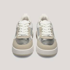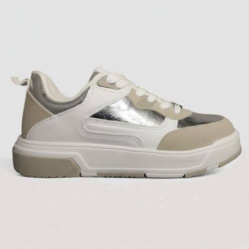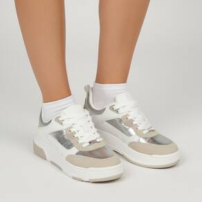 Tenis Feminino Vizzano Casual Cadarços Metalizado 1455.107 é a escolha perfeita para mulheres que buscam estilo, conforto e modernidade no dia a dia. Seu design sofisticado combina acabamentos em couro sintético branco com detalhes metalizados prateados e toques em bege, criando um visual contemporâneo e versátil para diversas ocasiões casuais.