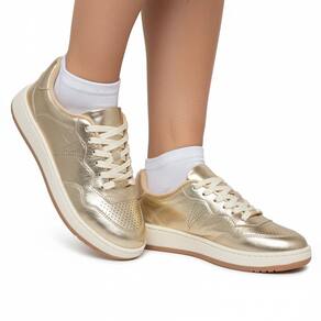 Tênis Feminino Vizzano Fashion Metalizado Cadarços 1466.100: conforto aliado ao estilo moderno para o dia a dia. Com design metalizado em tom dourado, este tênis é perfeito para mulheres que desejam destacar seu look com um toque fashion e sofisticado, sem abrir mão do conforto. Seu cabedal em material sintético proporciona resistência e fácil limpeza, enquanto a palmilha macia garante conforto prolongado. A sola emborrachada antiderrapante oferece segurança em diferentes superfícies, ideal para uso urbano e casual. O fechamento com cadarços ajusta perfeitamente aos pés, favorecendo a estabilidade. Este modelo Vizzano surpreende por sua versatilidade, combinando com jeans, vestidos e roupas esportivas, sendo indispensável para quem busca elegância e praticidade.