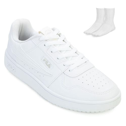 Nome: Tênis Fila ACD Classic e Meia FL23. Gênero: Masculino. Indicado Para: Dia a Dia-Treino e Competição. Ocasião: Corrida/Casual Material Externo: Alternativo com recortes e costuras. Material Interno: Têxtil. Fechamento: Cadarço. Palmilha: Forrada e macia. Solado: Borracha. Entressola: Borracha. Tipo de Pisada: Neutra. Detalhes: Logo da marca na lateral externa e parte traseira. Peso do Produto: 1.230 kg (o peso varia de acordo com a numeração). Garantia do Fabricante: Contra defeito de fabricação. Origem: Nacional. Código Produto: 01024448. Marca: Fila. Acompanha um par de meias tamanho 37 ao 43. Composição: 83 % Algodão. 12 % Poliéster. 05 % Elastodieno.