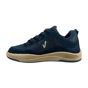 O cabedal é confeccionado em materiais sintéticos de alta qualidade, com detalhes em tecido respirável que favorecem a ventilação dos pés, mantendo a sensação de frescor mesmo após longas horas de uso. A estrutura reforçada garante durabilidade e segurança, enquanto o ajuste por cadarços proporciona firmeza e estabilidade a cada passo.