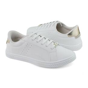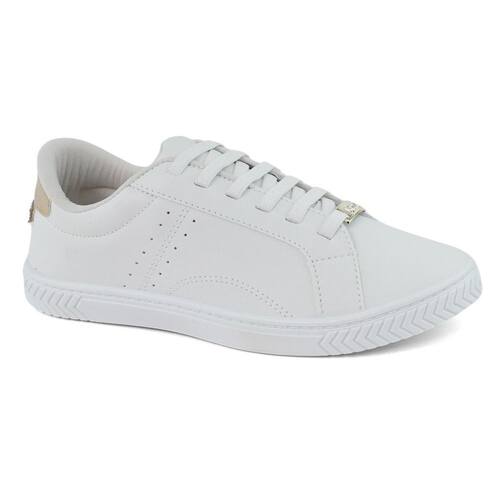 Tênis Godiva Calce Fácil Tachas Metálicas Feminino Branco Dourado 340907