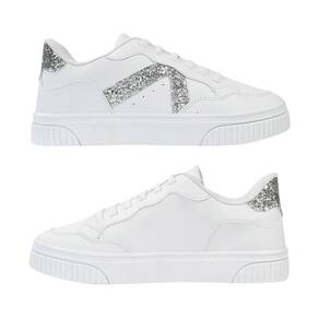 O Tênis Godiva Casual Feminino Branco Bronze possui design moderno e despojado, perfeito para compor os mais divertidos looks. Fabricado em material sintético de alta qualidade, seu cabedal é todo na cor branca, com detalhe na cor prata com acabamento em glitter, na lateral e na traseira, possui cadarços como forma de ajuste, também conta com forro interno revestido por material têxtil, sua palmilha é macia, composta por espuma e seu solado é emborrachada e possui altura elevada.