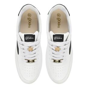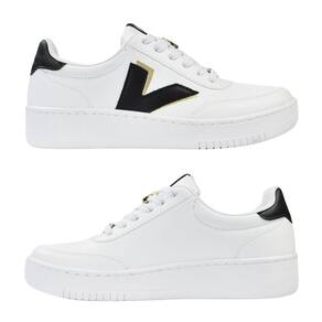 Tênis Godiva Casual V Lateral Cadarço feminino Branco Preto 338394
