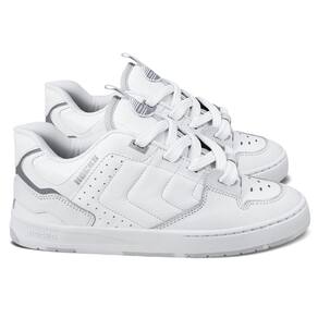 Cabedal premium: camurça e sintético em acabamento all white, resistente e estiloso.