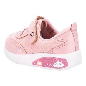 O Tênis Infantil Feminino Baby Led Molekinha é confeccionado em Napa Turim com acabamento em costura, fechamento por tira aderente e cadarço, forro interno em têxtil, palmilha em PU e solado em borracha com luz de Led que acende a cada passo.