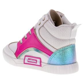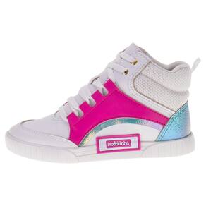 O Tênis Cano Alto Molekinha foi criado para acompanhar os passos das pequenas com muita personalidade e conforto. Confeccionado em Napa Turim, Napa Pele Stech e Metalizado Glow. A palmilha em PU é acolchoada e o solado em borracha oferece segurança em cada passo.