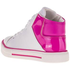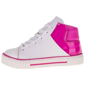 O Tênis Infantil Cano Alto Molekinha é confeccionado em Napa com detalhe envernizado, acabamento em costura, fechamento por cadarço de amarração, forro interno em têxtil, palmilha em PU acolchoado e solado em borracha antiderrapante.