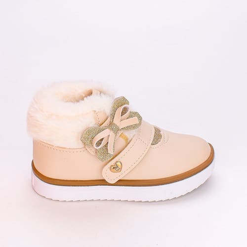 Transforme os passos da sua pequena em um desfile de estilo e conforto. Com sua delicada cor marfim, detalhes em pelinhos e glitter dourado o modelo dá uma dose extra de fofura e brilho para os pezinhos em crescimento. O cano médio não só adiciona um toque de charme, mas também proporciona suporte aos tornozelos, garantindo estabilidade durante todas as brincadeiras. Seu fechamento em fita aderente garante um ajuste seguro e personalizado, enquanto o solado antiderrapante proporciona estabilidade em uma variedade de superfícies. Equipado com a tecnologia Respitec exclusiva Kidy, que mantém os pés secos e frescos, garantindo uma experiência de conforto duradouro.