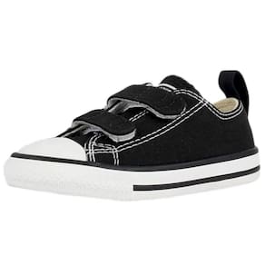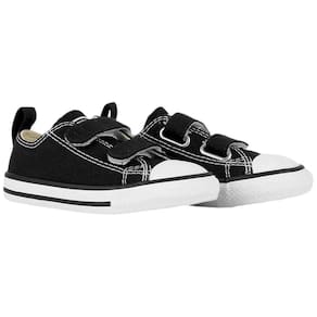 O clássico Chuck Taylor All Star nesta versão kids é confeccionado em tecido lona de algodão e vem em diversas cores. O tênis possui duas tiras colantes na parte superior para fechar e puxador traseiro para facilitar o calçar.