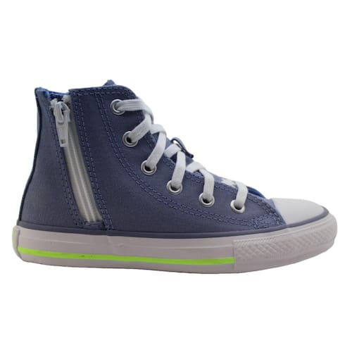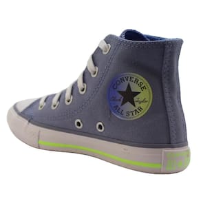 O clássico Chuck Taylor All Star na versão kids e em cores sazonais, é confeccionado em tecido canvas de algodão tipo lona, possui costuras duplas, uma tira de tecido no calcanhar que proporciona maior suporte ao tênis, forro interno acolchoado para maior conforto e dois ilhoses laterais para uma transpiração adequada aos pés. O Patch Logo com assinatura Converse Chuck Taylor All Star é aplicado na parte interna dos canos, enquanto o logo Converse All Star é aplicado na heeltab do calcanhar. O solado vulcanizado garante a aderência adequada ao caminhar.