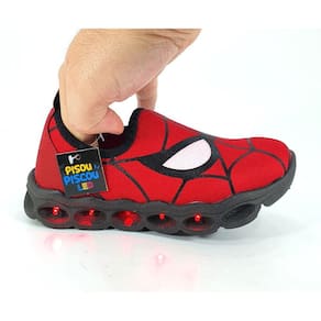 Tênis calce fácil de apenas enfiar os pés, possui palmilha macia, solado antiderrapante, tecido personalizado aranha.