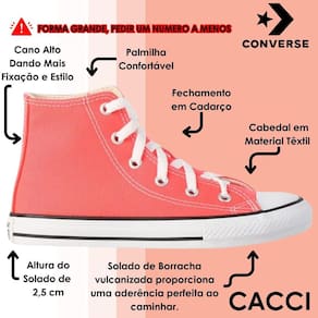 O Tênis Infantil Converse Chuck Taylor All Star Ck0428 é um dos tênis mais icônicos e reconhecíveis do mundo da moda. Seu design atemporal e versátil combina com uma ampla variedade de roupas e estilos, permitindo que você crie looks casuais, despojados e cheios de personalidade.
