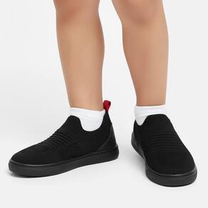 Tênis Slip On Casual Masculino: conforto e estilo para o dia a dia. Este modelo slip on oferece praticidade ao calçar, combinando com diversas ocasiões casuais. Confeccionado em tecido knit respirável, promove ventilação ideal e ajuste confortável aos pés. A sola emborrachada proporciona aderência e segurança em diferentes superfícies. Design minimalista em preto com detalhe vermelho traz modernidade sem perder versatilidade. Ideal para homens que buscam um calçado leve, durável e fácil de usar. Perfeito para quem valoriza mobilidade sem abrir mão do visual contemporâneo.