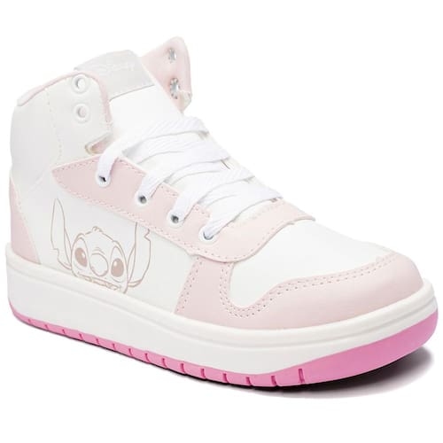 Tênis Infantil Disney Stitch Recortes Cano Alto Menina - Branco e Rosa - 28 - Branco