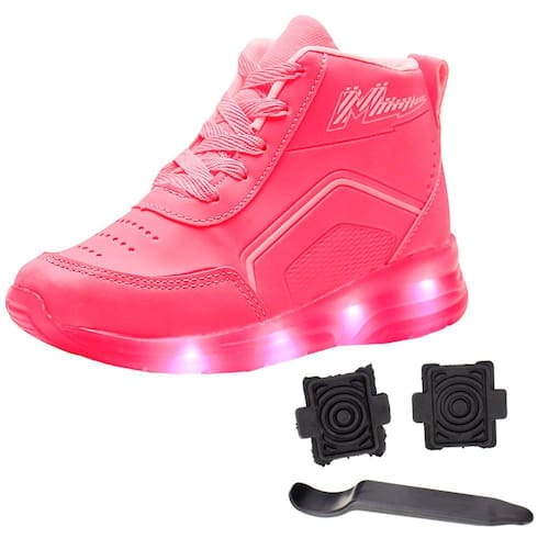 O Tênis Infantil Led Com Rodinha Minipé é confeccionado em material de alta qualidade com acabamento em costura, fechamento por cadarço de amarração, forro interno em têxtil, palmilha em EVA e solado em borracha antiderrapante com luz de LED que acende em cada passo e rodinha removível.